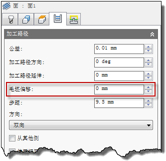 “面”策略允许您通过“毛坯偏移”设置为自动或手动毛坯轮廓指定附加偏移。