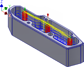 如果此零件是由我们可以进行全宽度切削的软质材料制造而成,我们可以通过允许刀具在挖槽中保持向下来避免斜插。
