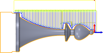 对于不完全水平的曲面,Inventor HSM 会在轴向和径向(壁)加工余量值之间插值,因此在这些曲面的轴向方向上剩余的毛坯量可能不同于指定的值,具体取决于曲面坡度和径向加工余量值。