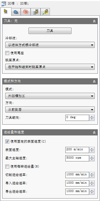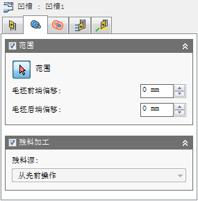 凹槽加工策略用于使用凹槽刀具对零件进行粗加工和精加工。