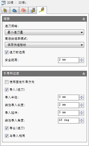 指定切削加工路径起点处导入移动的距离(长度)。