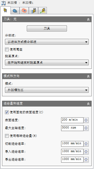根据车削加工策略(轮廓或凹槽),此设置决定了刀具是轴向加工还是径向加工以及进刀/退刀方向。