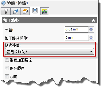 “追踪”允许向选定轮廓的左侧和右侧补偿刀具。