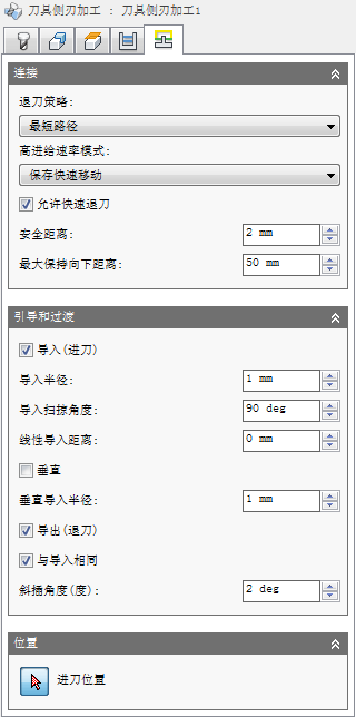 显示了垂直进刀/退刀