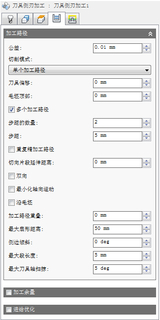 加工公差是用于刀具路径生成和形状三角测量的公差之和。必须将任何其他过滤公差加到此公差中来获得总公差。