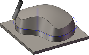 对于不完全垂直的曲面,Inventor HSM 会在轴向(底面)和径向加工余量值之间插值,因此在这些曲面的径向方向上剩余的毛坯量可能不同于指定的值,具体取决于曲面坡度和轴向加工余量值。