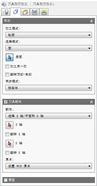从“加工模式:”下拉菜单中选择“轮廓”可提供以下同步选项:
