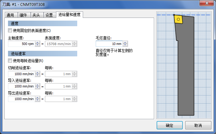 该对话框右侧的预览显示了刀具的形状,并且会自动更新以反映您对刀具进行的任何更改。