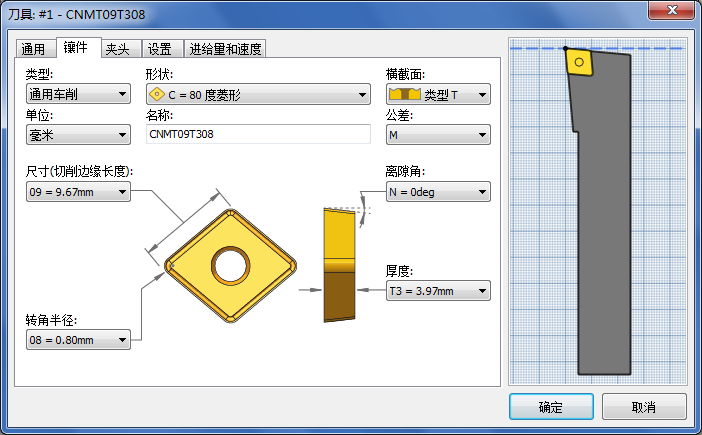 “新车削刀具”对话框分为五个选项卡,您可以从中编辑各个车削刀具: