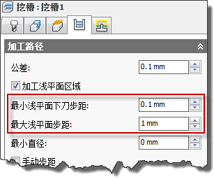 激活“加工浅平面区域”复选框后,将显示两个控制参数: