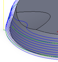 “加工浅平面区域”选项显示在固定 Z 层策略(如“挖槽清除”和“轮廓精加工”)的“加工路径选项卡中。该选项对于具有陡峭壁以及接近于平面(浅平面区域)的区域或挖槽的零件非常有用。