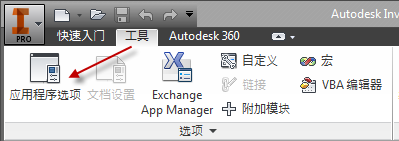 2. 启动 Inventor:访问“应用程序选项”对话框,然后导入包含从其执行导入的 Inventor 版本的设置的 XML 文件。