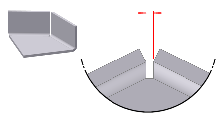在创建展开模式时,会应用在特征的“拐角”选项卡中指定的拐角释压类型和半径尺寸。它不会显示在折叠模型中。