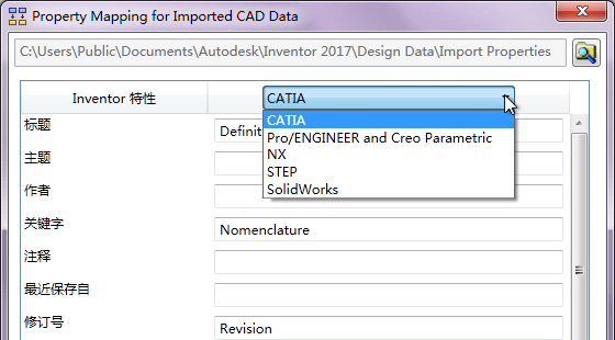 使用“对导入的 CAD 数据进行特性映射”工具,可轻松将 CATIA、Pro/Engineer 和 Creo Parametric、NX、STEP 和 Solidworks 中的特性映射为标准 Inventor 特性。