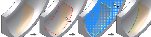注: “面上的曲线”最适合相切和浅角平面。当面之间的角度增加时,“面上的曲线”工具可能无法生成令人满意的结果。