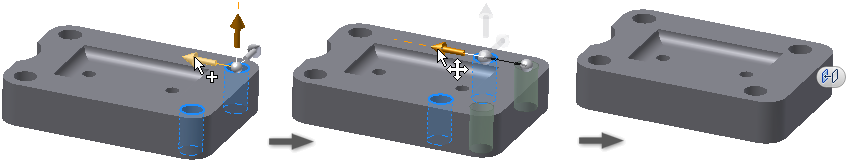 使用“直接编辑”可以更改在 Inventor 中创建的实体,还可以更改导入的无历史记录的实体模型。