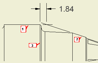 选择一条模型边 (3) 以定义尺寸。还可以执行步骤 2 至 4 以定义其他交点,或者在工程视图中选择点。