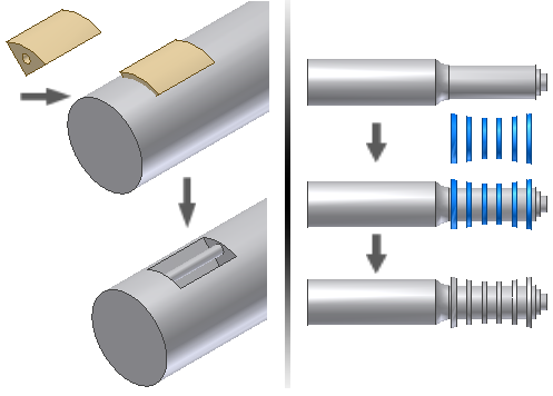 可以选择多个工具体,或者选择在创建扫掠、拉伸或旋转特征时生成的中间体积,以用于合并操作。定位用于操作的实体的最有效方式是在位创建它们。使用包含“新建实体”选项的“创建”面板上的特征命令。您还可以使用“衍生零部件”命令导入实体进行操作。