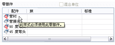 零部件表为要查看或创建的样式列出了基本的零部件集。符号指示该零部件是可选的还是必需的,以及该零部件是否存在任何问题。将光标停在符号上方时,将显示描述信息。