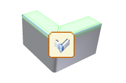 在这种情况中,有三个折弯聚于拐角,并且它们的外部半径与折弯的外部半径在同一侧(在选定的边之间)。这种情况下,在创建或后续编辑期间将提供如下编辑图示符: