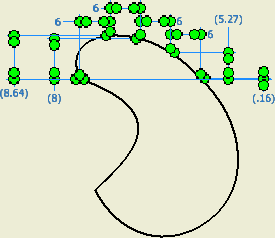 在样条曲线上移动光标。端点与 X 和 Y 最小值/最大值点是可选的点。