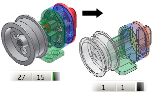 使用包覆面提取创建部件的简化单一零件表达,以提高后续部件或应用程序中的容量和性能。包覆面提取在后台使用衍生零部件命令从部件创建单一零件。包覆面提取可以使用现有的设计视图或详细等级表达来实现最大效率。仅计算可见零部件。