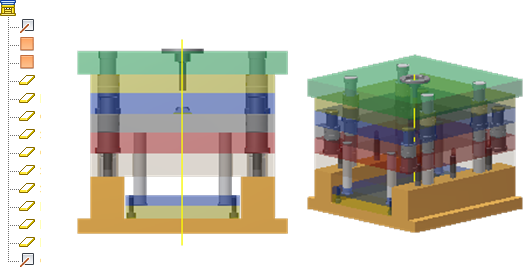 为每个模具板选择工作平面或工作轴,以在二维工程图中自动生成中心线。 |