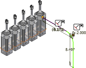 草图管段必须手动编辑或删除。除非受到完全约束,否则系统会动态调整管段长度和方向,但不会添加或删除管段。