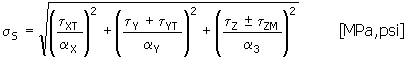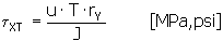 扭矩 T 引起的剪切应力的 x 分量 [MPa, psi] |
