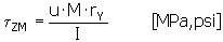 弯矩 M 引起的剪切应力 [MPa, psi] |