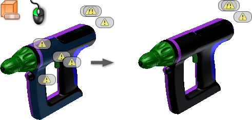 注: 若要使错误图示符在图形窗口中持续显示,请在浏览器中的错误文件夹或单个错误上单击鼠标右键,然后选择“错误图示符可见性”。浏览器中选定错误旁边将显示一个复选标记。若要取消可见性切换,请单击鼠标右键并选择“取消”,或者按 Esc 键。