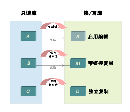 通过链接或不通过链接保存副本到父族 在用户库中创建父族的物理副本。在“合并视图”中,复制的族从父族单独显示。仅复制的族显示在可读写库的视图中。用户可以编辑复制的族的表格和特性。父族和复制的族之间的链接使您可以同步复制的族与其父族。