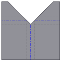 - 线状焊缝。从内侧折弯区域线与凸缘边的交点到外侧折弯区域线与凸缘边的交点定义的 V 形切割。最小释压允许后续焊接操作关闭拐角。