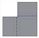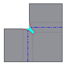 - 使用半径画圆。将凸缘边延伸至其交点处,然后放置指定大小的相切圆角。半径可能会小于使用“全圆角”选项生成的半径。
