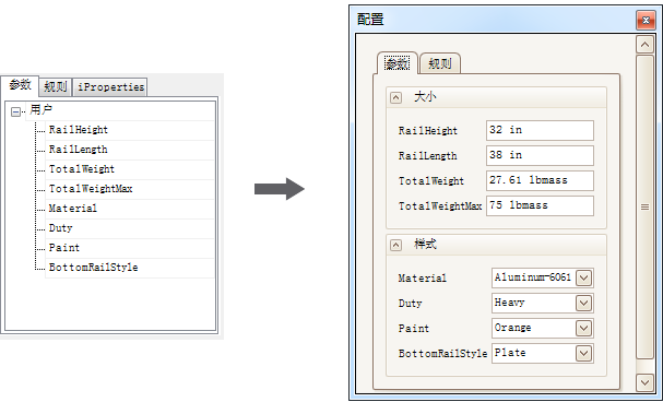 创建自定义用户界面并将其与 Inventor 零件、部件或工程图文档的参数、特性和规则关联起来。