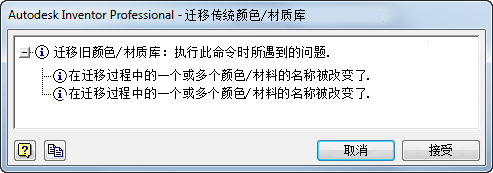 有关详细信息,请参考 Autodesk Inventor 帮助中的“移植 Inventor 旧材料和颜色”。