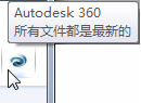Autodesk 360 通知图标会自动安装在任务栏通知区域中。如果您添加到云中的任何文件未与本地计算机上的相应文件同步,将显示一条消息。可以随时将鼠标悬停在通知图标上来检查状态。