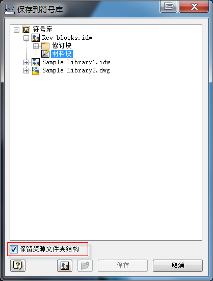 在将略图符号保存到库时,将会保留库的文件夹结构。若要完成此操作,请单击“保留资源文件夹结构”复选框。