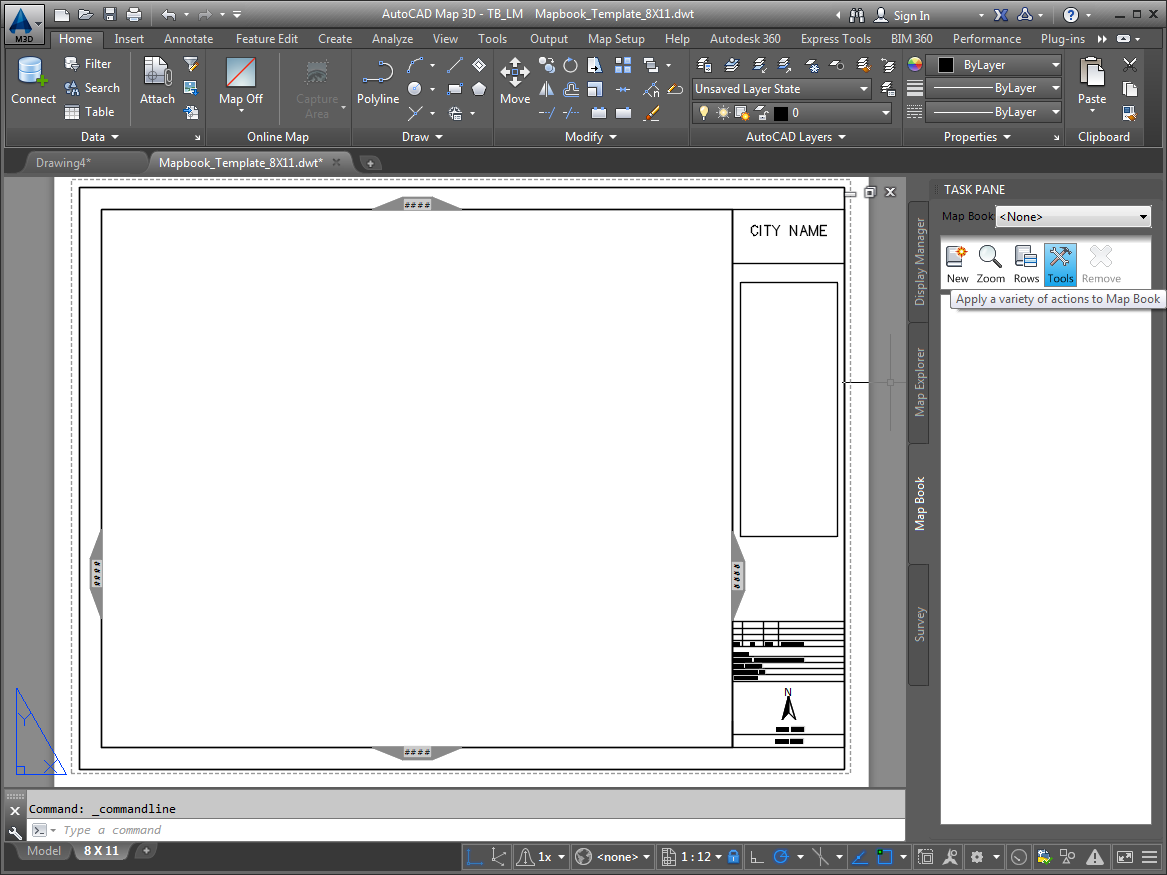 定义地图册样板并保存地图后,可以将地图册发布到绘图仪或发布为 DWF 文件。