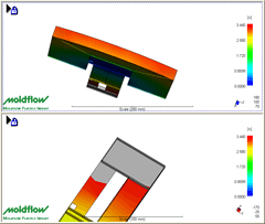 将显示要填充的模型的各个末端在时间上的差异。这将导致在填充的首个部分中出现过保压。