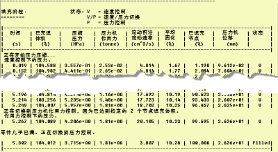如果查看日志文件填充阶段,会找到 3.715 MPa 的速度/压力切换之后的压力。