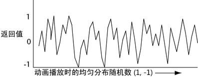 如果要在播放动画时重复执行 rand (-1,1),其返回值可能如以下插图中所示: