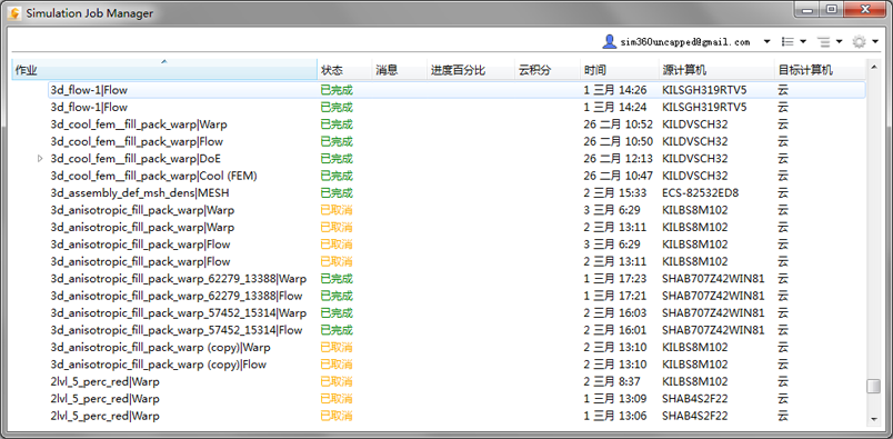 这是执行分析的计算机。 注: 若要按照列中的任意值(例如“状态”、“进度”或“时间”)对作业进行排序,请单击与您希望选取的标准对应的列标签。若要颠倒顺序,请再次单击该列标签。