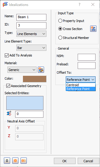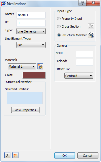 - 结构构件:此选项用于选择现有结构构件。“结构构件”选项用于将一维单元定义为 PBEAM、PBAR 或 PPIPE。有关详细信息,请参见《Autodesk Nastran 用户手册》中有关使用 PBEAML、PBAR 和 PPIPE 的重要性的部分。