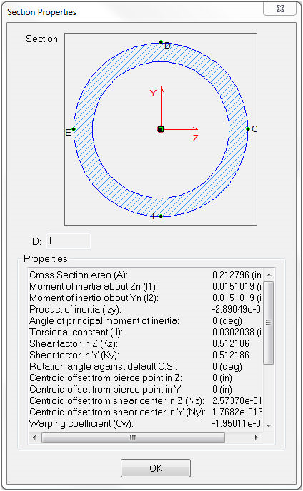 - 常规横截面信息(“面积”、Iz、Iy 等)将在选定的结构构件类型的“特性”部分中列出。