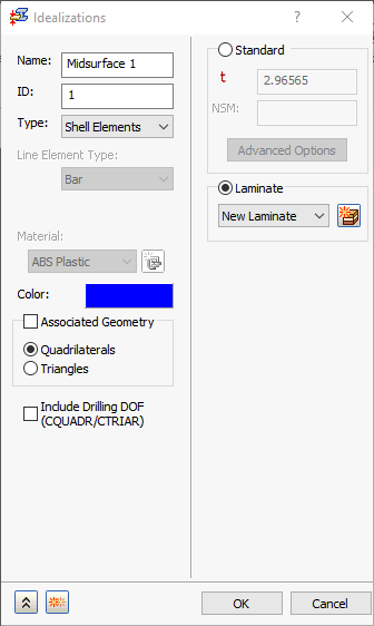 有两个主要选项可用于壳单元:“标准”和“层压板”。
