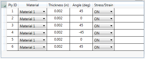 - 角度:这是层的方向角度。此角度是相对于“材料方向”角度测量的。零角度层与材料方向一致。