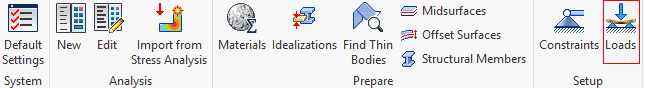 在“Autodesk Nastran”功能区选项卡的“设置”面板中单击“载荷”
