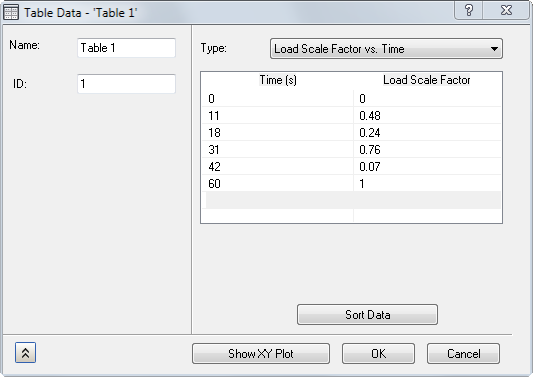 要设置表,请在 Autodesk Nastran In-CAD 树中,右键单击“表”并选择“新建”。双击单元格以输入值。