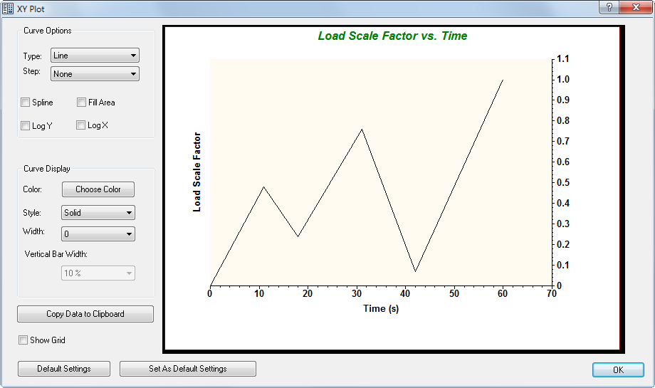 - 设置为默认设置:用于将窗体中的当前设置定义为默认设置。选中“默认设置”后,这些项将成为“XY 图”设置将复原到的设置。